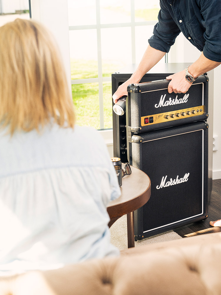 Tyylikäs ja ikoninen Marshall-jääkaappi tuo ainutlaatuisen kosketuksen huoneeseesi. Sijoita se grillin viereen, toimistoon tai työpaikalle tai miksi ei television tai sohvan lähellelle? Ikoninen Marshall-muotoilu on heti tunnistettavissa ja antaa viileän vaikutelman ympäristöstä riippumatta. Anna Marshall-jääkaapisi ottaa paikkansa, se ansaitsee sen.